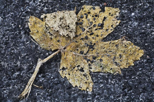 In autunno le strade in città sono decorate dalle foglie cadute e calpestate, ancora belle nella loro fragilità. Un piccolo lavoro sull’impermanenza