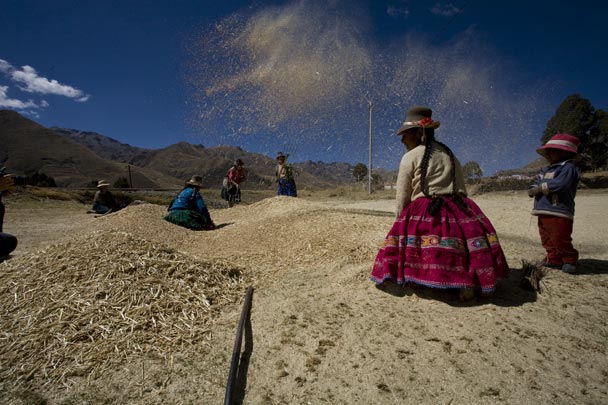 Nei nostri viaggi in Perù, soprattutto durante i due trekking sopra i 4000 metri nel Salkantay verso Machu Picchu e nell’Ausangate nella regione di Cusco, abbiamo incontrato gli abitanti delle valli andine, comunità che vivono in condizioni estreme, l’altitudine, il freddo, la fatica del lavoro dei campi, il pericolo continuo di frane. Voglio rendere onore a queste donne a questi uomini e ai loro bambini